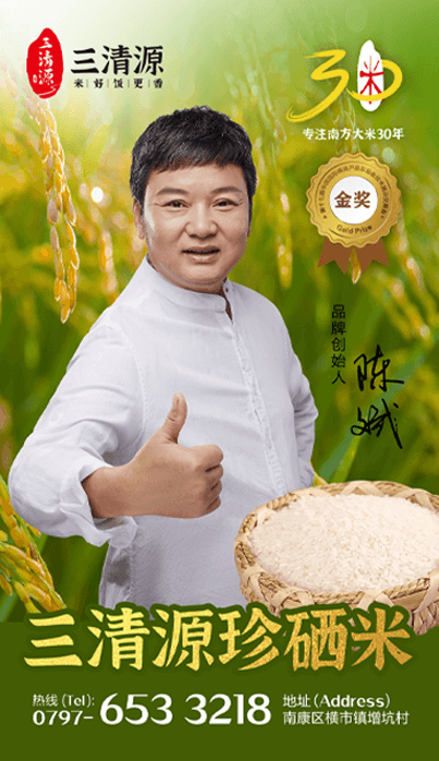 三清源品牌所在地南康横市镇,大米种植、生产历史悠久,早在《宋史》和《天工开物》中就有记载。横市镇有着深厚的传统农耕文化,当地人遵循传统耕作技艺,融入现代化人工智能作业设备,加上赣南特有的土壤、气候、水源的优势,使三清源大米历史上就成为江南特别优秀的稻米。公司生产的优质产品"三清源"系列大米,米粒均匀饱满,晶莹如玉,蒸饭清香适口,营养丰富,赢得了广大消费者的信赖和支持。
